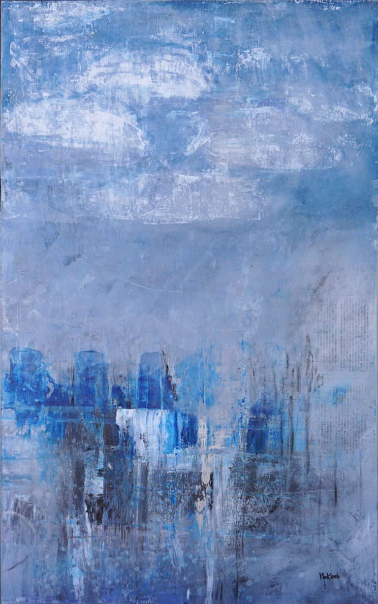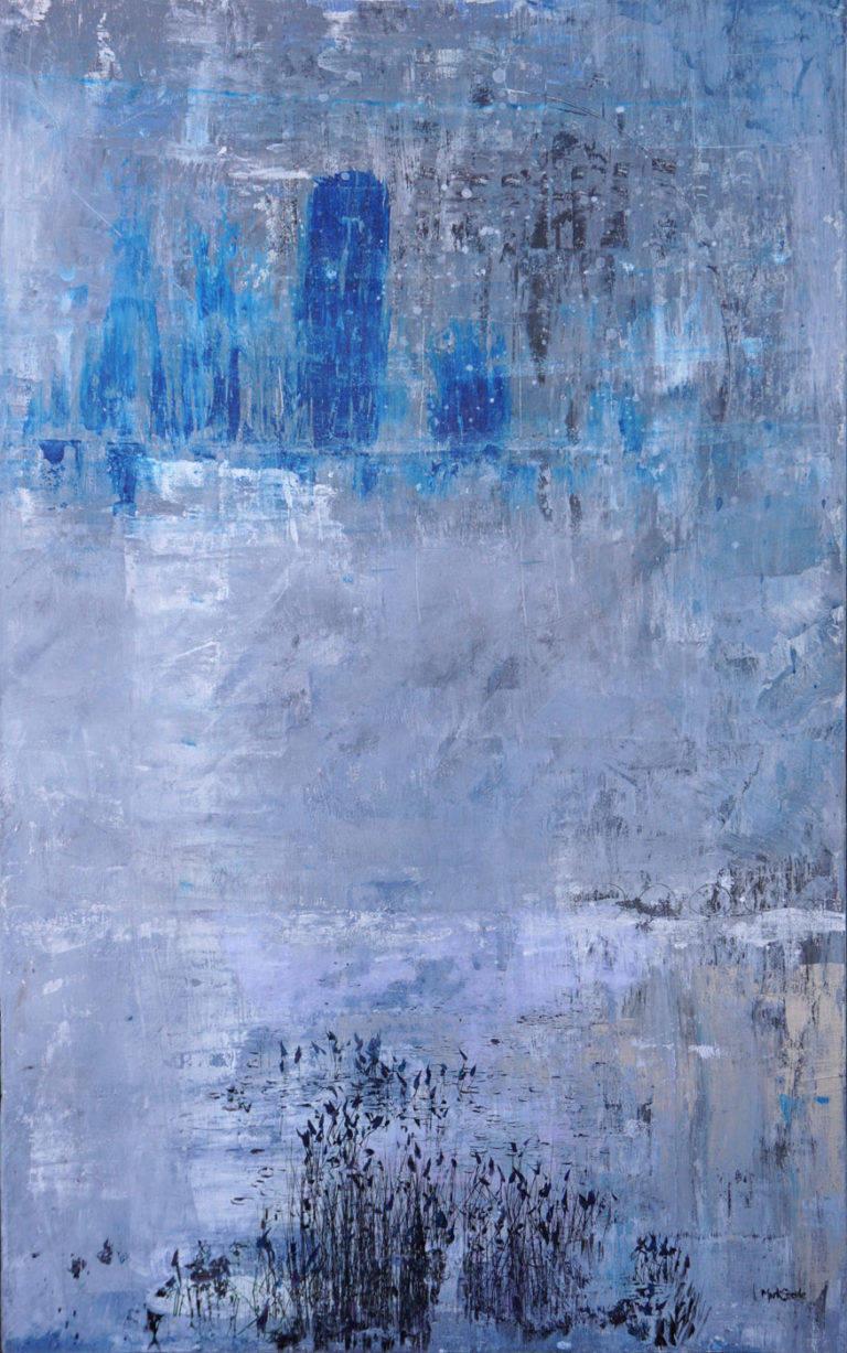 Blue and black abstract 1 – acrylic and venitian plaster on panel 39.5″ x 24″